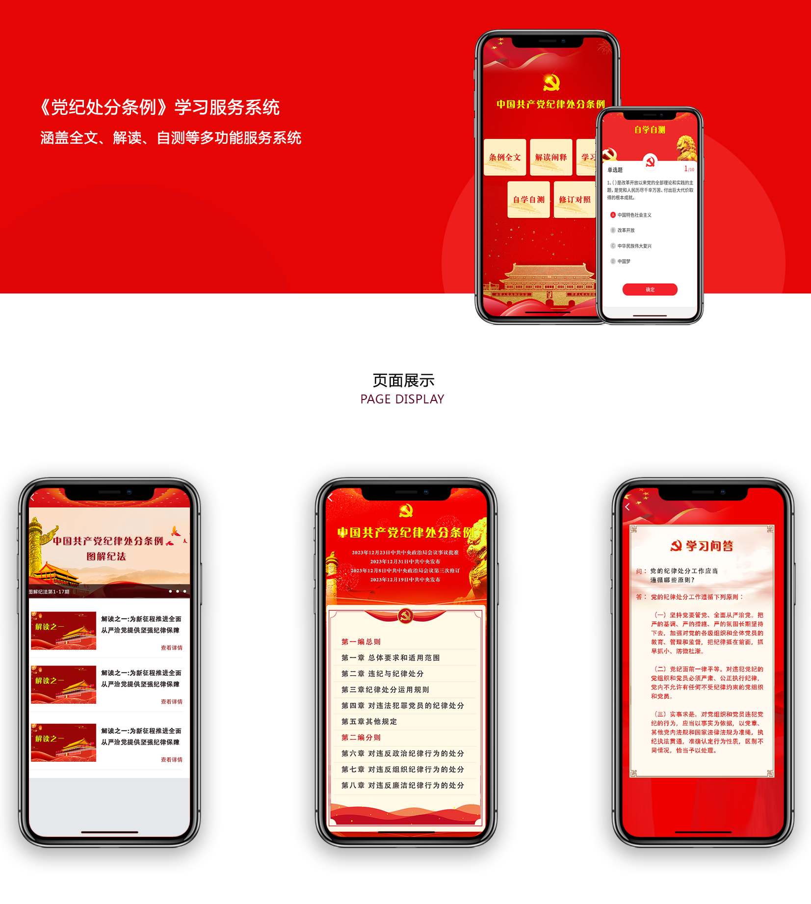 這是一款為 XX 黨政機(jī)關(guān)量身打造的《中國(guó)共產(chǎn)黨紀(jì)律處分條例》學(xué)習(xí)服務(wù)系統(tǒng),集條例全文、解讀闡釋、學(xué)習(xí)問(wèn)答、自學(xué)自測(cè)、修訂對(duì)照等功能于一體,助力黨政機(jī)關(guān)工作人員全方位、便捷化學(xué)習(xí)黨紀(jì)處分條例,強(qiáng)化紀(jì)律意識(shí),推動(dòng)黨紀(jì)學(xué)習(xí)在黨政機(jī)關(guān)走深走實(shí)。